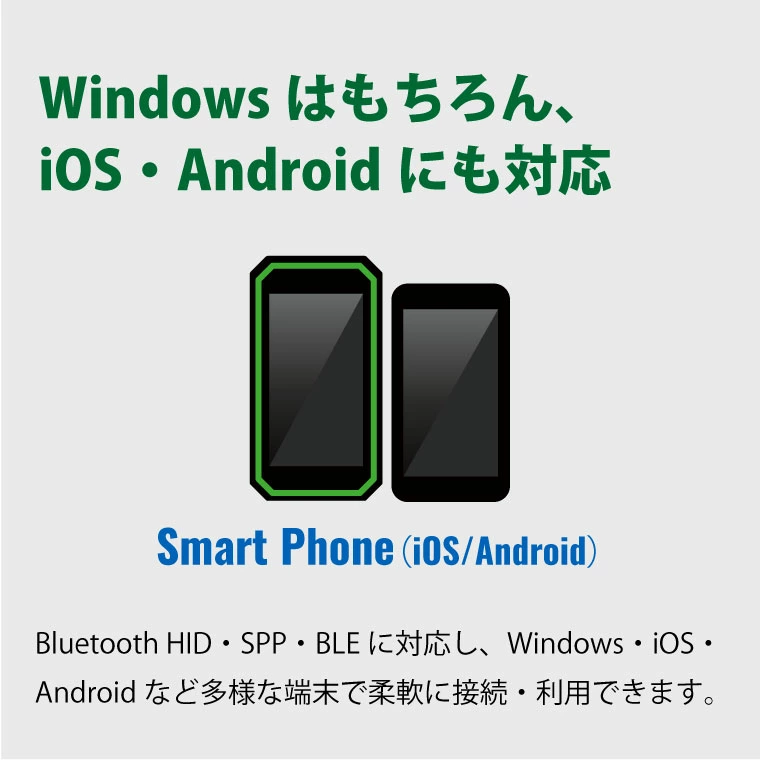 - HID・SPP・BLE対応のBluetooth接続(iOS/Android/Windows)