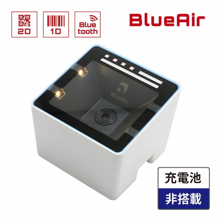 BlueAir eTicketは、Bluetooth無線通信およびUSB接続に対応したデスクトップ型2次元コードリーダーです。省スペース設計により受付カウンターや窓口での使用に適し、スマートフォンやタブレット表示のeチケットやQRコードをスムーズに読み取ります。バッテリ搭載モデルではケーブルレス運用も可能です。