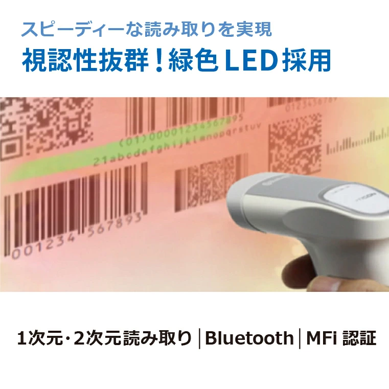 MFi認証・抗菌仕様・Bluetooth対応の小型2Dコードリーダー