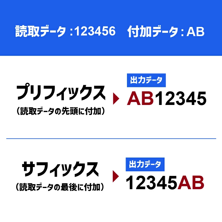 - プリフィックス・サフィックスで任意の文字列や制御文字を自動付加