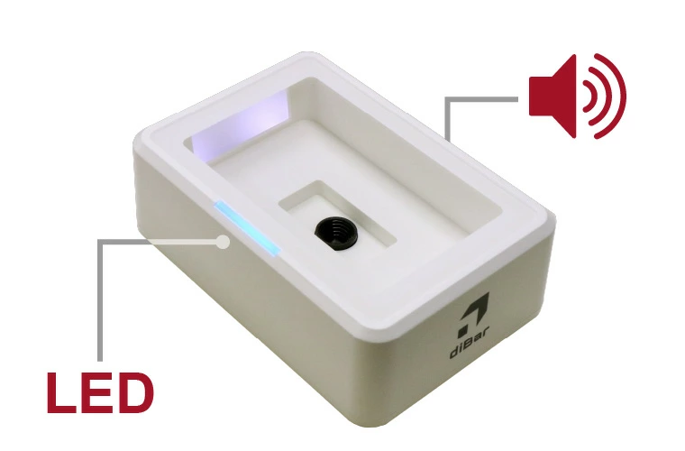 diBar eTicketは、紙媒体と液晶ディスプレイのどちらに表示されたコードも安定して読み取れる設計の2次元コードリーダです。広い読取ウィンドウと大型LED通知により、POS端末やレジ機器などへの組込み用途に適しています。